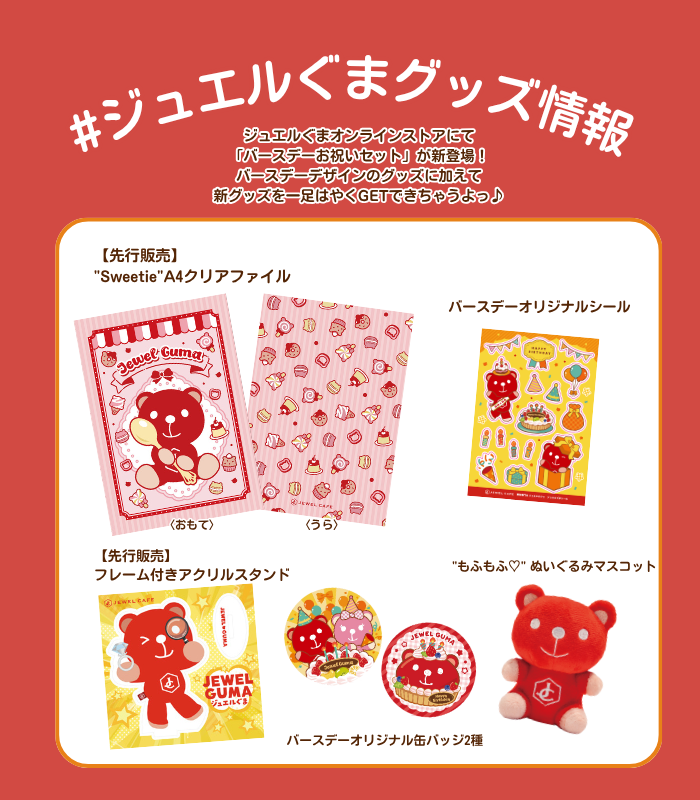 11月9日はジュエルぐまのお誕生日♪ そこでお誕生日を記念したグッズを販売中だよっ🐻☆ 詳しくは公式X・Instagramをチェックしてねっ!