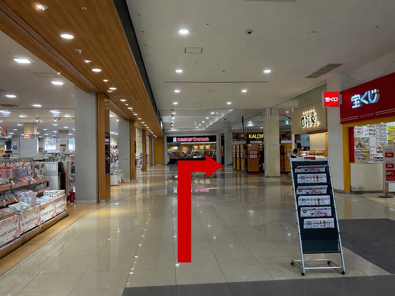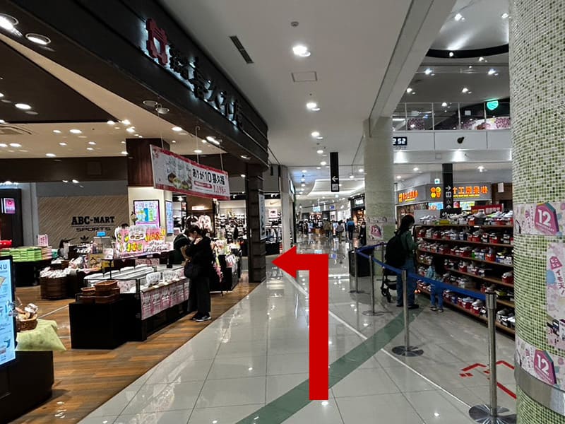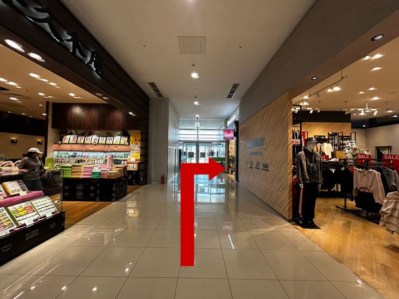 左側奥に直進していただきますと赤い外装が見えてきます。