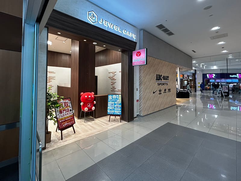 A【公共交通機関でお越しの場合】 JR天童南駅より徒歩3分、イオンモール天童を発着とした天童駅西口を通るルートの無料シャトルバスも運行しております。無料シャトルバスの天童まちなか循環バス(平日のみ)は、イオンモール天童を始発終着となっており「どんがホール→イオンモール天童」のルートとなっております。また山形駅、天童駅よりイオンモール天童経由の路線バスも運行しております。ジュエルカフェはイオンモール天童の1Fグリーンコート東入口前にございます。 【お車でお越し場合】 山形市から県道22号を天童市6丁目まで行き右折すると前方左側に ございます。駐車場は、イオンモール天童お客様専用駐車場に 駐車をお願いいたします。