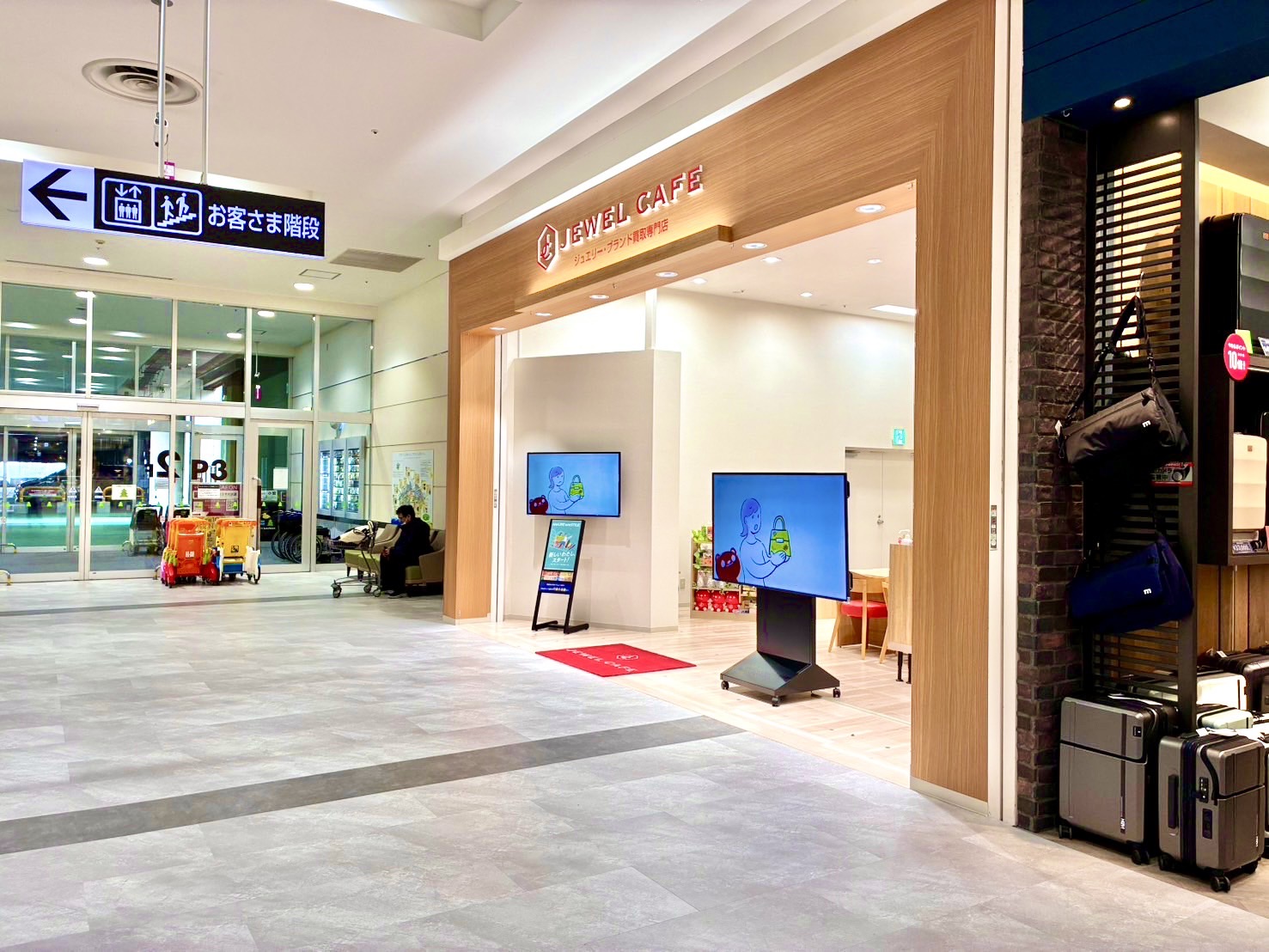 立体駐車場出入り口(P3)すぐ右手前がジュエルカフェです。
