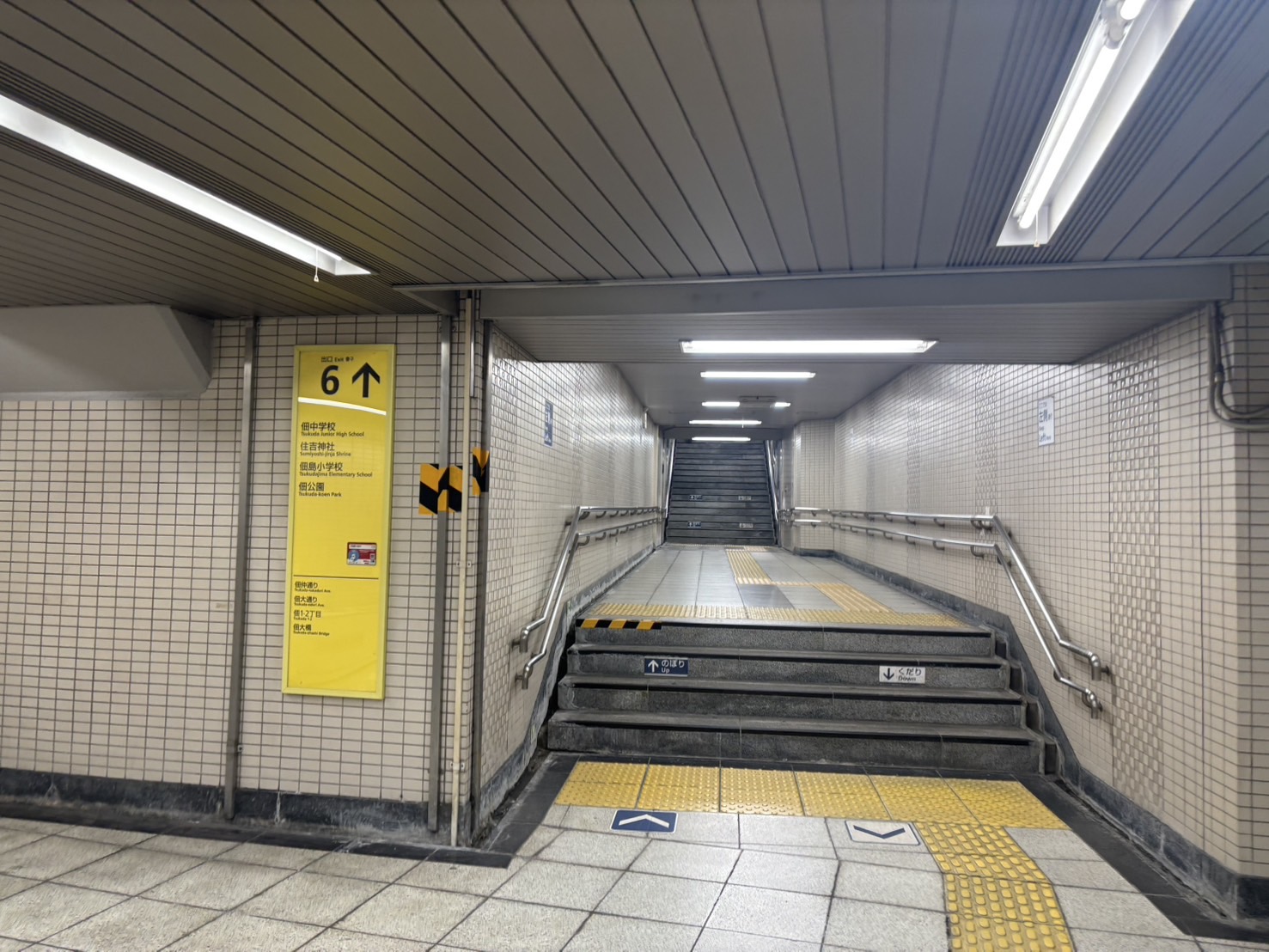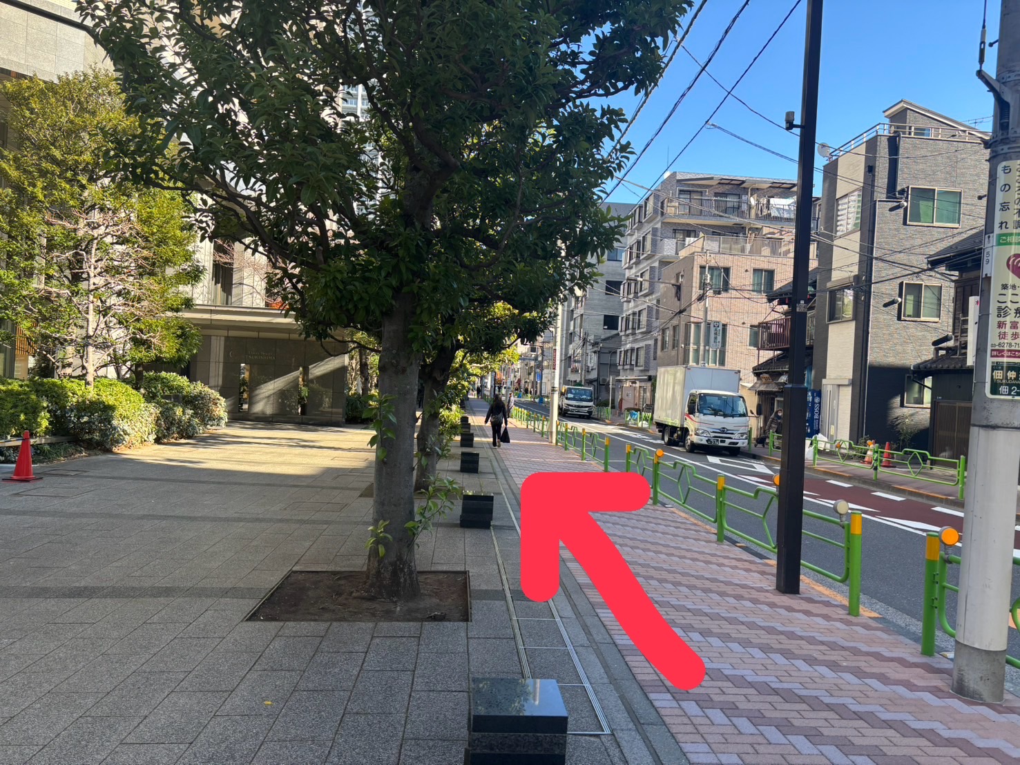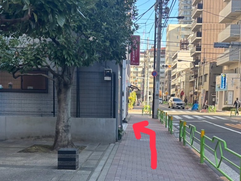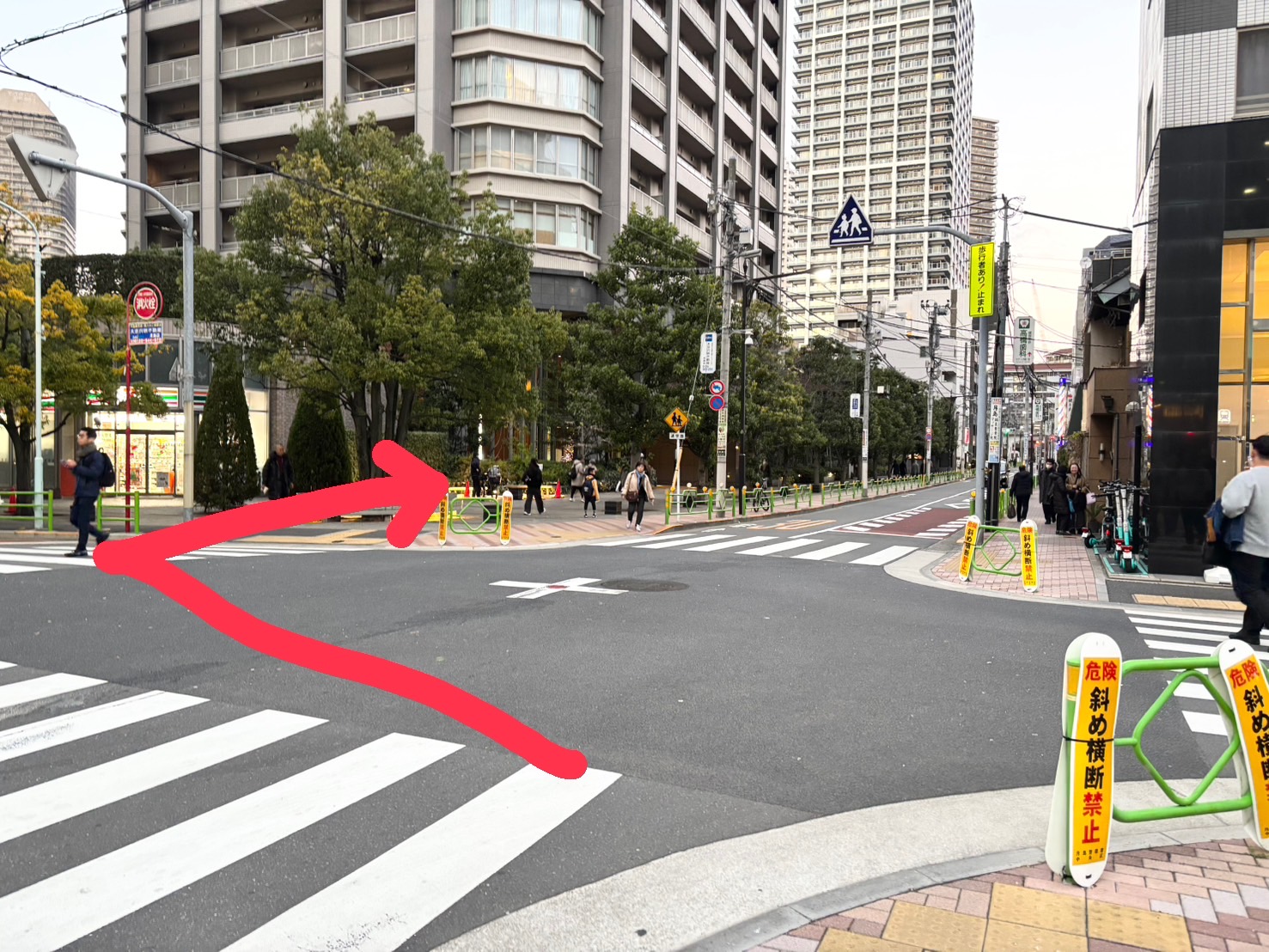 6番出口を出ると交差点がありますので、道路の反対側へ渡ります。